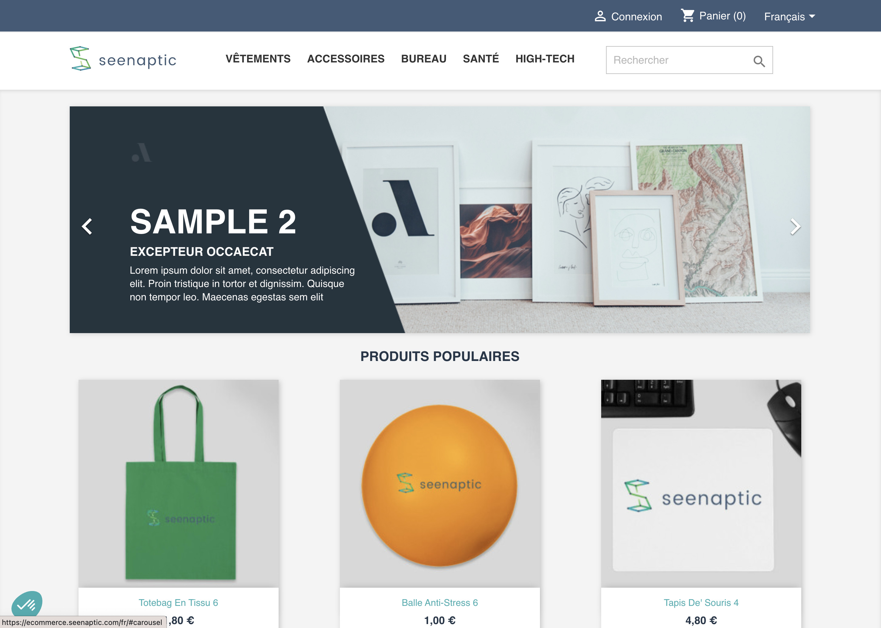 • Fournissez une URL exemple : https://ecommerce.seenaptic.com/fr/vetements/p/52-121-t-shirt-femme-manches-courtes.html.